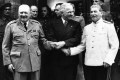 ** FILE ** A photo from July 23, 1945 showing the handshake between Winston Churchill, left, Harry S. Truman and Josef Stalin, right infront of Churchill’s residence in Potsdam, Germany. Ninety years after he was executed, Czar Nicholas II is leading a tight race to be named the greatest Russian in history. His closest competitors? Soviet dictator Josef Stalin and Vladimir Lenin, the founder of the Soviet state that killed the last czar and his entire family. The contest, sponsored by state-owned Rossiya television, is a Russian version of the 2002 BBC show «Great Britons,» which was won by Winston Churchill. A U.S. version in 2005 declared Ronald Reagan, the former president who had died the year before, to be the «Greatest American.» (AP Photo/Files)