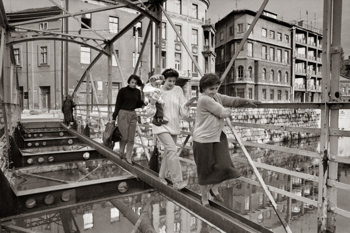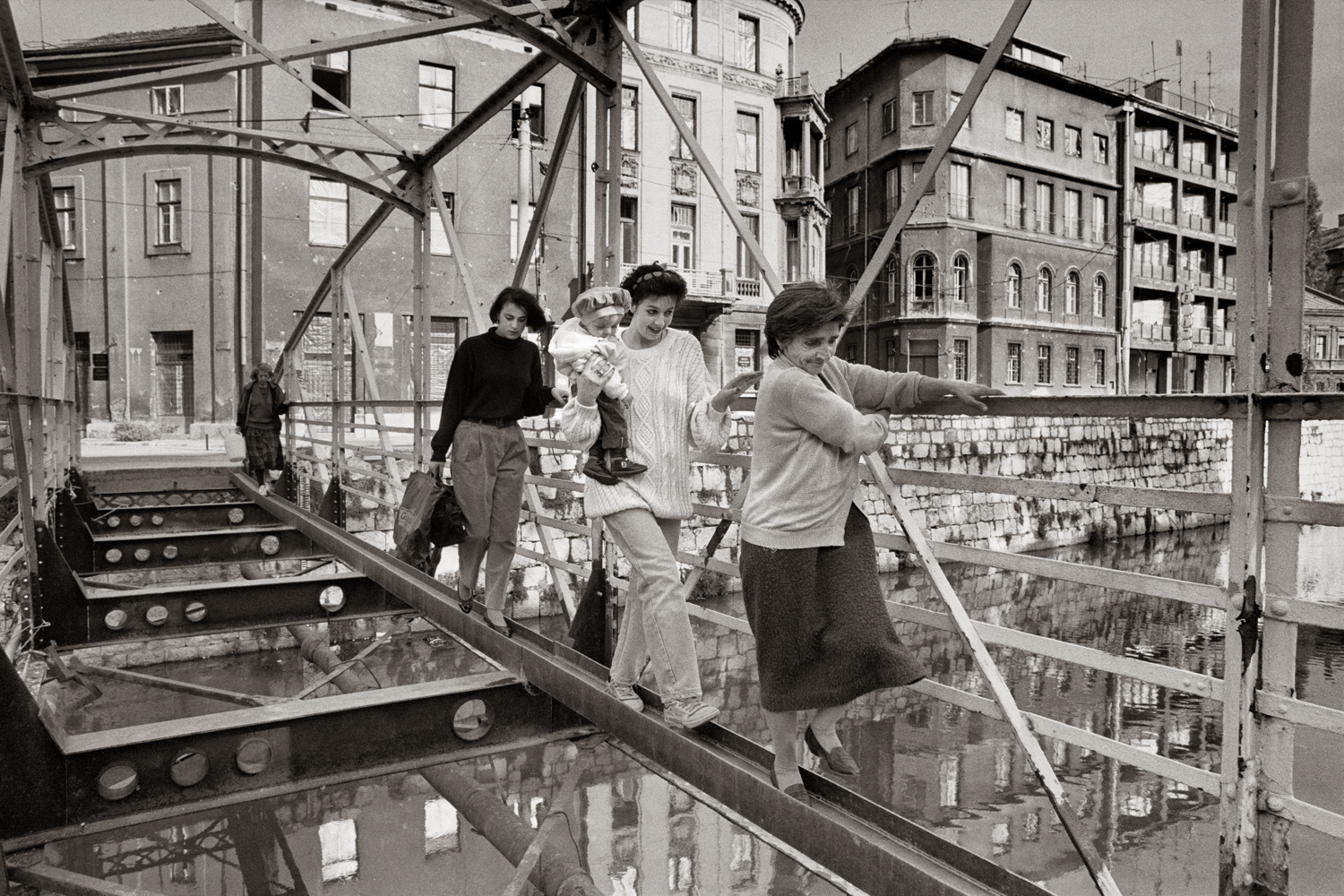 ‘Gervasio Sanchez mujeres cruzando puente Sarajevo’