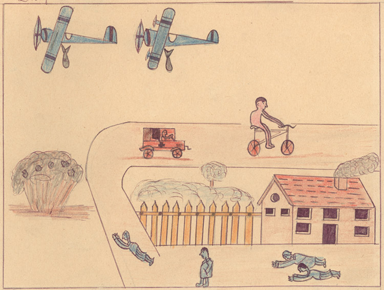 ‘Bombardeo dibujado por un niño de la Guerra Civil Española’