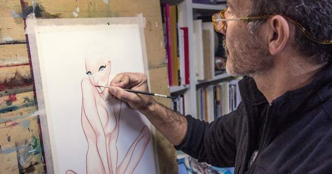 Fernando Vicente (Madrid, 1963) trabaja siempre de pie. Comenzó a publicar sus obras en los años ochenta y aún prefiere el pincel al ratón: «soy un ilustrador de caballete«. Tras ilustrar el resumen de Pérez-Reverte de la peor de nuestras guerras (‘La guerra civil contada a los jóvenes’) y el texto más leído de Karl Marx (‘El manifiesto comunista’), ha convertido su caballete en una ventana al Petrogrado de 1917. El resultado es la mejor edición del clásico de John Reed.