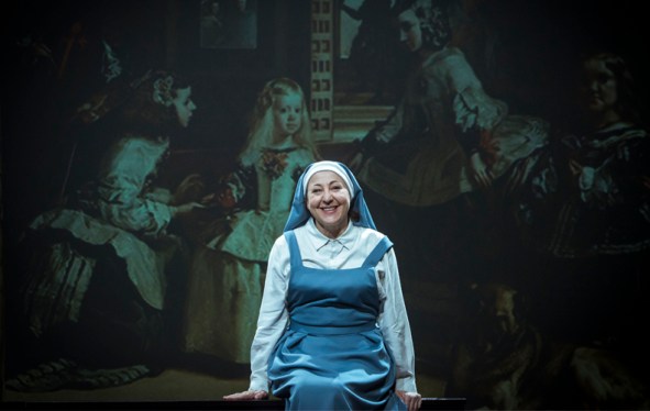 “¿Vemos o nos ven?”, se pregunta Foucault en su ensayo sobre ‘Las Meninas’, consciente de que Velázquez nos asigna “un lugar a la vez privilegiado y obligatorio” en su pintura. Desde el escenario, entre el cuadro y nuestro (elegido) sitio obligatorio, Sor Ángela nos invita a ver su metamorfosis. Estamos en 2037 y gobierna ‘Puebloenpie’. Para pagar los intereses de una deuda insostenible, esta caricatura de Podemos va a vender la obra maestra de Velázquez a una petromonarquía árabe. Así comienza ‘La autora de Las Meninas’, una distopía de Ernesto Caballero que nos alerta de políticos utilitaristas mientras reflexiona sobre los límites de la creatividad. No te fíes de la sonrisa cándida de esta monja que debe copiar ‘Las Meninas’. En el alma de Sor Ángela duerme un ego que el diablo despertará a golpe de tentaciones, en un viaje disparatado e inolvidable a través de las vanguardias del siglo XX. Soy incapaz de imaginarla protagonizada por otra actriz que no sea Carmen Machi. Insuperable.