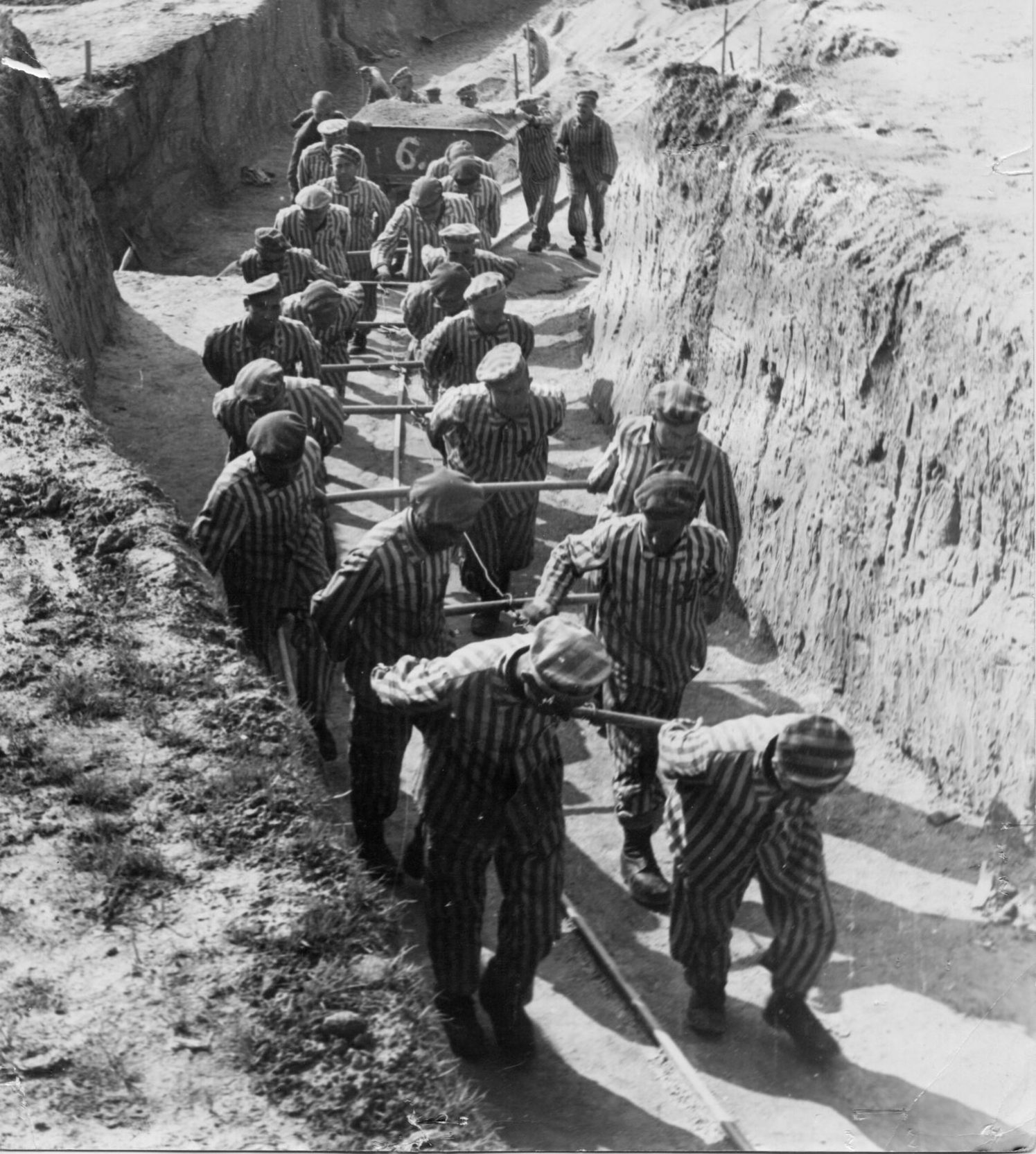 ‘Prisioneros españoles tirando de un vagón de tierra en Wiener Graben, la cantera de piedra de Mauthausen (1942)’