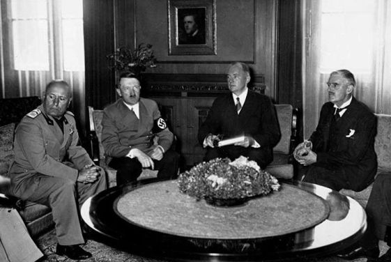 Mussolini, Hitler, su intérprete y Chamberlain (Munich, 1938)
