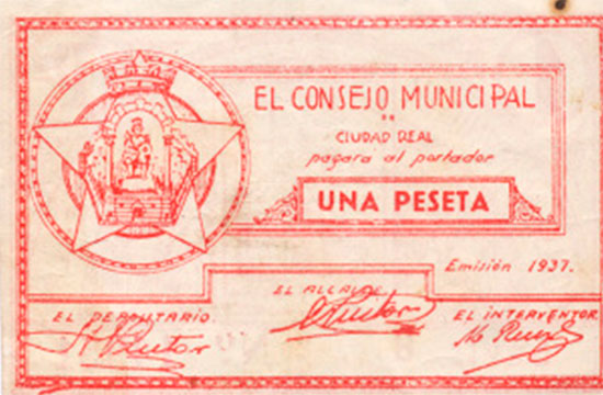 ‘Billete de una peseta Ayuntamiento Ciudad Real Guerra Civil’